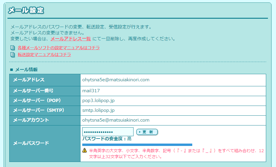 ロリポップ側のメール設定を確認し、
