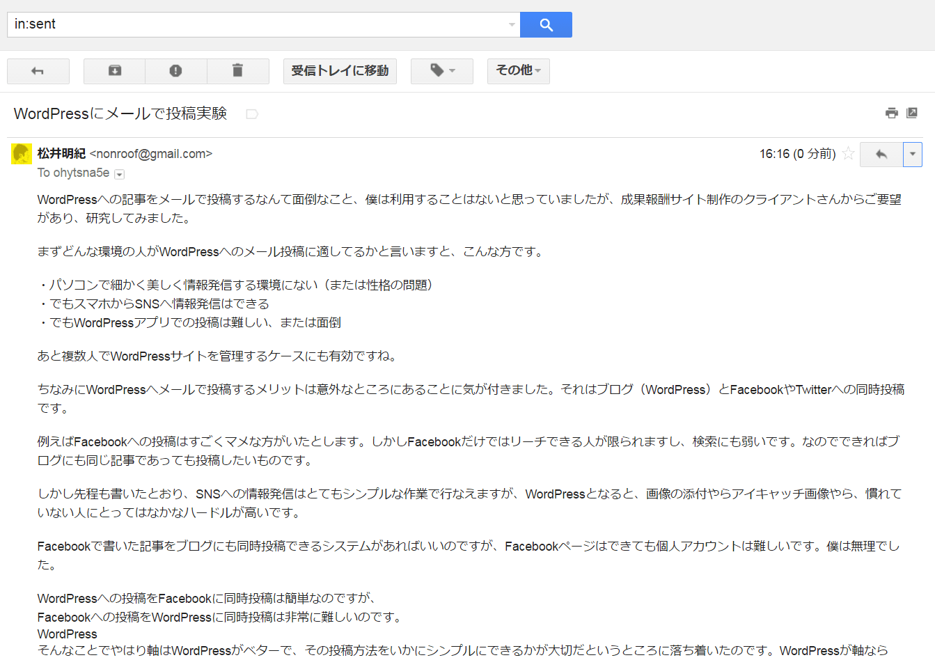 WordPressにメールで投稿実験2